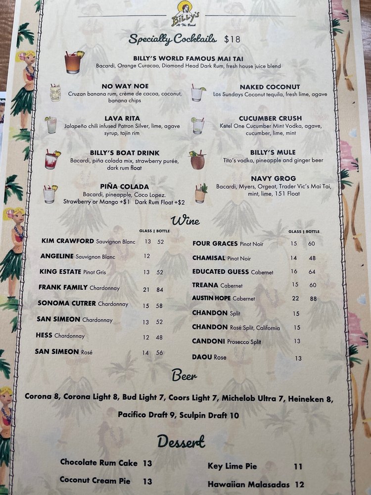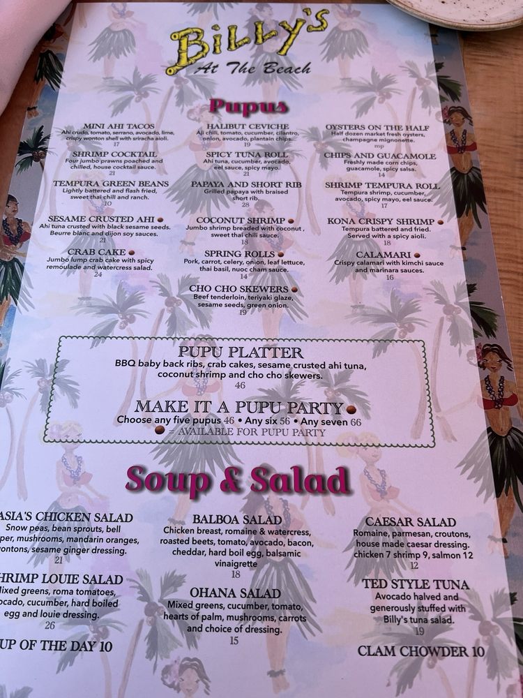 Indulge in the flavors of Hawaiian cuisine at Billy's at the Beach, a seafood and cocktail bar located in Newport Beach, CA. This restaurant offers a variety of dishes featuring fresh seafood, tropical flavors, and handcrafted cocktails. From their creamy Clam Chowder to the flavorful Coconut Shrimp pupus, there is something for every palate. The Grilled Ahi Sandwich and Huli Huli Chicken come highly recommended by satisfied customers, providing a taste of island paradise. The ambiance, panoramic harbor views, and attentive service make dining at Billy's a memorable experience. Whether you're celebrating a special occasion or simply craving a taste of the tropics, Billy's at the Beach is a must-visit destination for food enthusiasts.